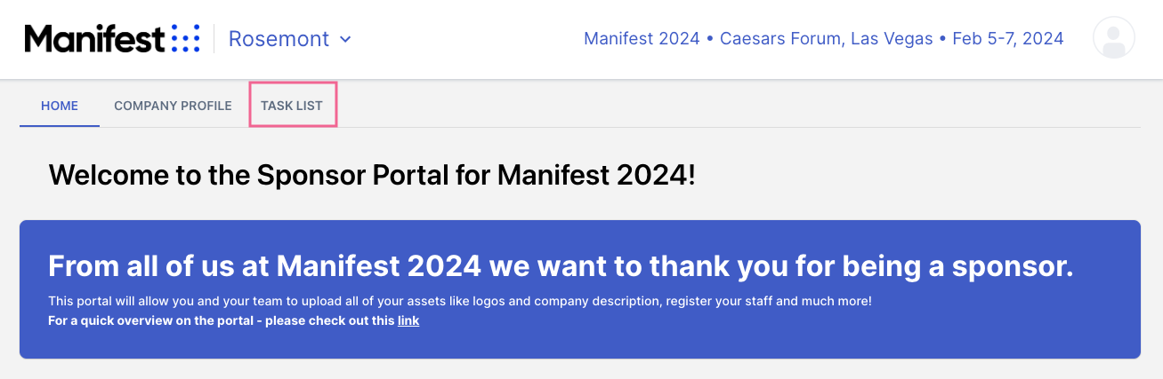 Sponsor staff and client registration for Manifest 2026 will be done on our Manifest Sponsor Portal. Credentials to login will be sent to the primary contact listed on your contract. The portal access emails containing credentials will be sent from the address sponsorsupport@manife.st.